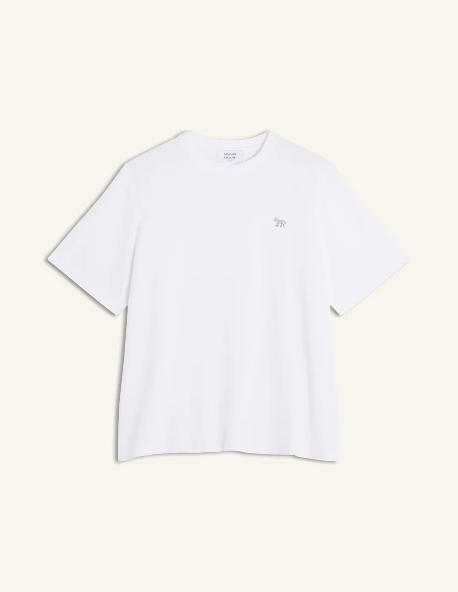 DETAILS Clean cotton jersey (240g) t-shirt. Comfort fit with Baby Fox embroidered patch on the chest. - T-shirt in cotton clean jersey (240g) - Comfort fit - Crew neck - Tonal Baby Fox embroidered patch on the chest - Ribbing at the neckline OW00130KJ0119-P100 SIZE & CUT Cut: COMFORT Sizing: WOMEN MATERIAL 100% ORGANIC COTTON TRACEABILITY Made in Portugal