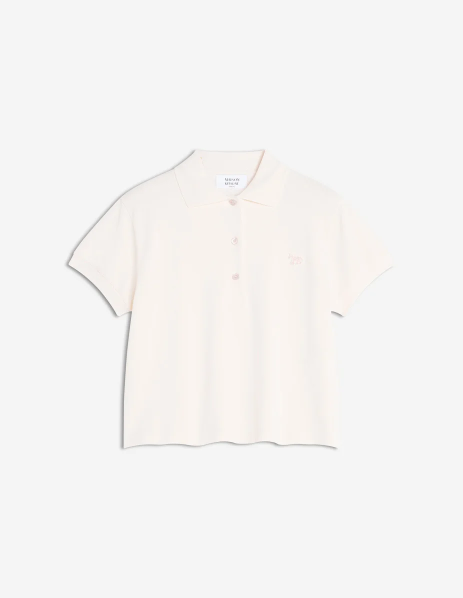 DETAILS Cotton pique polo shirt with short sleeves. Cropped fit with a Tonal Baby Fox embroidered patch. - Cotton pique polo - Organic cotton - Cropped fit - Short sleeves - Polo collar with button closure - Tonal Baby Fox emboidered patch on the chest PW00204KP0001-0306 SIZE & CUT Cut: CROPPED Sizing: WOMEN The female model is 5.7 and is wearing size S MATERIAL 100% COTTON TRACEABILITY Made in Portugal