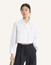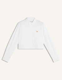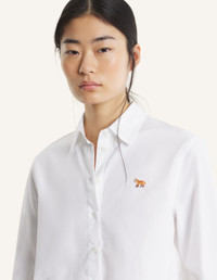DETAILS Cropped shirt in cotton poplin. Baby Fox embroidered patch on the chest. - Cotton poplin shirt - Cropped fit - Classic collar - American button placket with Maison Kitsune engraved buttons - Long sleeves finished-off with buttoned cuffs - Baby Fox embroidered patch on the chest QW00402WC0026-P100 SIZE & CUT Sizing: WOMEN The female model is 5.8 tall and wears a size S MATERIAL 100% COTTON TRACEABILITY Made in Morocco