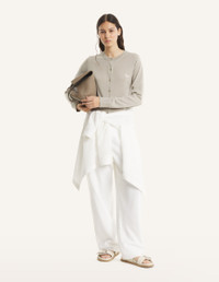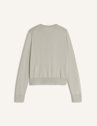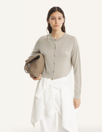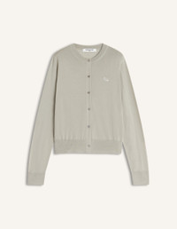 DETAILS Fine merino wool cardigan. Regular fit with Baby Fox embroidered patch on the chest. - Merino wool cardigan - Regular fit - Crewneck - Maison Kitsune engraved button closure - Tonal Baby Fox embroidered patch on the chest - Ribbing at the neckline, cuffs, and bottom MW00507KT1181-0450 SIZE & CUT Cut: REGULAR Sizing: WOMEN The female model is 5 tall and wears a size S MATERIAL 100% WOOL TRACEABILITY Made in Portugal