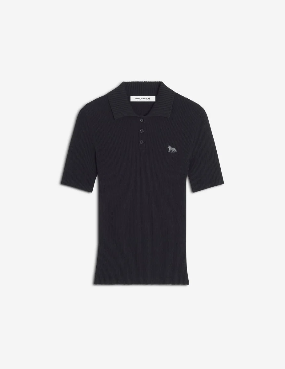 DETAILS Fine rib wool-cotton polo with short sleeves. Fitted, Tonal Baby Fox embroidered patch. - Wool and cotton fine-rib polo - Fitted - Short sleeves - Polo collar with button placket - Tonal embroidered Baby Fox patch at the chest PW00206KT1155-P199 SIZE & CUT Cut: FITTED Sizing: WOMEN The female model is 5.7 and is wearing size S MATERIAL 45% COTTON, 55% WOOL TRACEABILITY Made in China