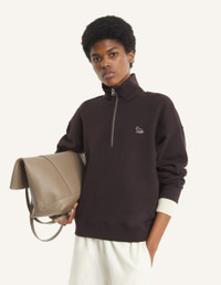 DETAILS Half zip sweatshirt in cotton casual fleece. Comfort fit with Baby Fox embroidered patch on the chest. - Half-zip sweatshirt in cotton casual fleece (440g) - Comfort fit - High neck - Half-zip closure with Profile Fox engraved zip puller - Tonal Baby Fox embroidered patch on the chest - Ribbing at the neckline, cuffs, and bottom MW00304KM0341-0423 SIZE & CUT Cut: COMFORT Sizing: WOMEN The female model is 5.7 tall and wears a size S MATERIAL Main Material: 100% ORGANIC COTTON, RIB: 2% ELASTANE, 98% ORGANIC COTTON TRACEABILITY Made in Portugal
