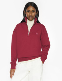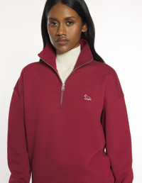 DETAILS Fleece sweatshirt with half-zip collar. Comfort fit with Tonal embroidered Baby Fox patch. - Plain fleece sweatshirt - Organic cotton - Comfort fit - Half-zip collar - Rib finishing at the collar, cuffs and hem - Tonal Baby Fox embroidered patch on the chest MW00304KM0341-0143 SIZE & CUT Cut: COMFORT Sizing: WOMEN The female model is 5.7 and is wearing size S MATERIAL Main Material: 100% COTTON, RIB: 98% COTTON, 2% ELASTANE TRACEABILITY Made in Portugal