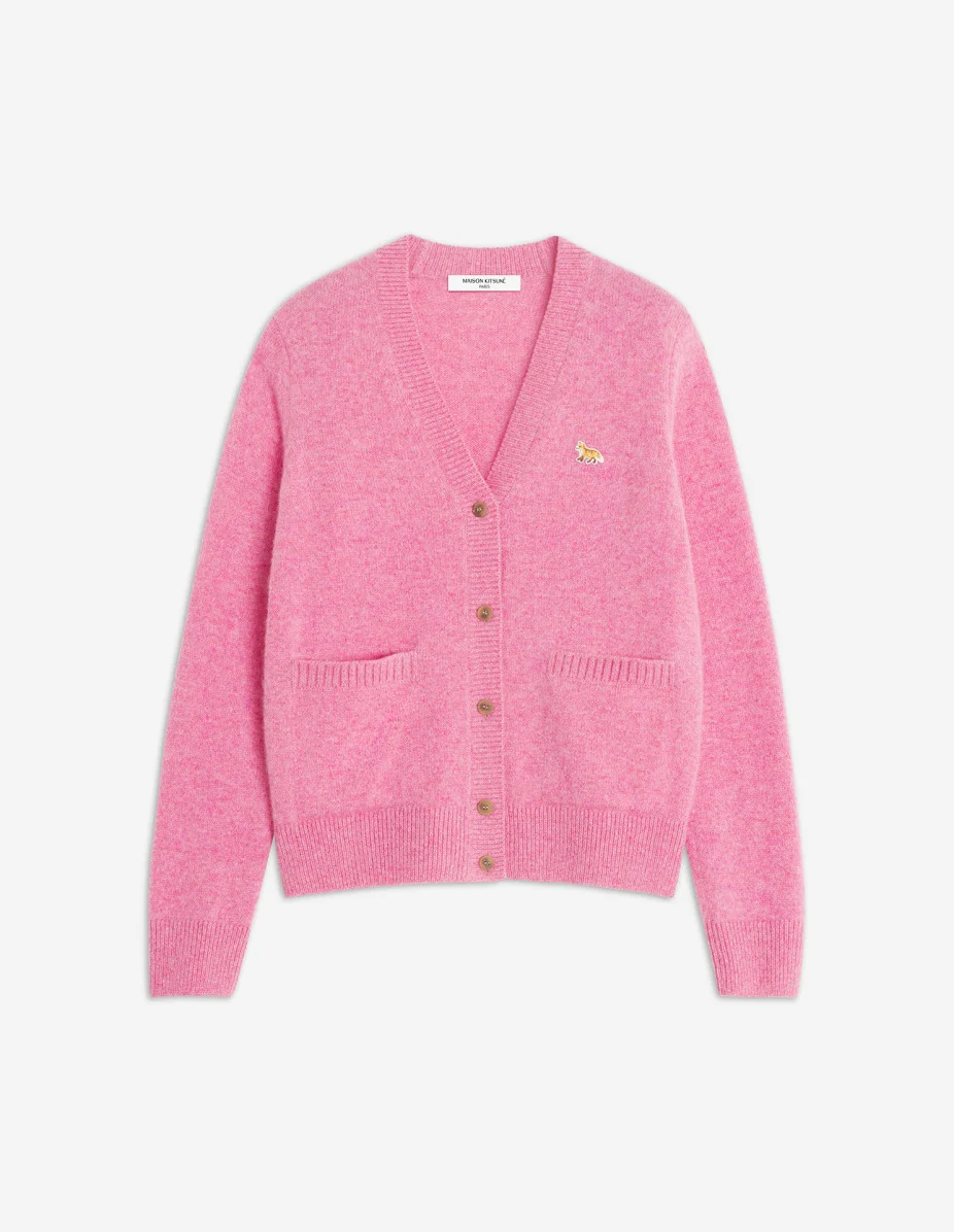 DETAILS Lambswool cardigan. Boxy fit with Baby Fox embroidered patch. - Plain lambswool cardigan - Boxy fit - V-neck - Maison Kitsune engraved button closure - Long sleeves - Two front patch pockets - Ribbing at the neckline, cuffs and hem - Soft & hypoallergenic knit - Baby Fox embrooidered patch on the chest PW00501KT1006-0327 SIZE & CUT Cut: BOXY Sizing: WOMEN The female model is 5.7 and is wearing size S MATERIAL 100% WOOL TRACEABILITY Made in Morocco