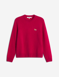 DETAILS Fine merino wool sweater with long sleeves. Regular fit with Baby Fox embroidered patch. - Plain extrafine merino wool jumper - Regular fit - Crew neck - Long sleeves - Rib finishing at the neckline, cuffs and waist - Fine gauge knit - Embroidered Baby Fox patch on the chest PW00819KT1006-0523 SIZE & CUT Cut: REGULAR Sizing: WOMEN MATERIAL 100% WOOL TRACEABILITY Made in Morocco