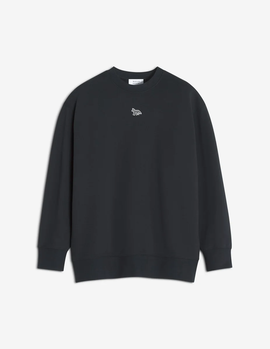 DETAILS Oversize fit fleece sweatshirt with crew neck, Tonal Baby Fox embroidered patch on the chest. - Plain fleece sweatshirt - Organic cotton - Oversize fit - Crew neck - Rib finishing at neckline, cuffs and hem - Tonal Baby Fox embroidered patch on the chest OW00301KM0341-P199 SIZE & CUT Cut: OVERSIZE Sizing: WOMEN The female model is 5.7 and is wearing size S MATERIAL Main Material: 100% COTTON, RIB: 98% COTTON, 2% ELASTANE TRACEABILITY Made in Portugal