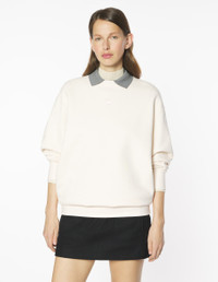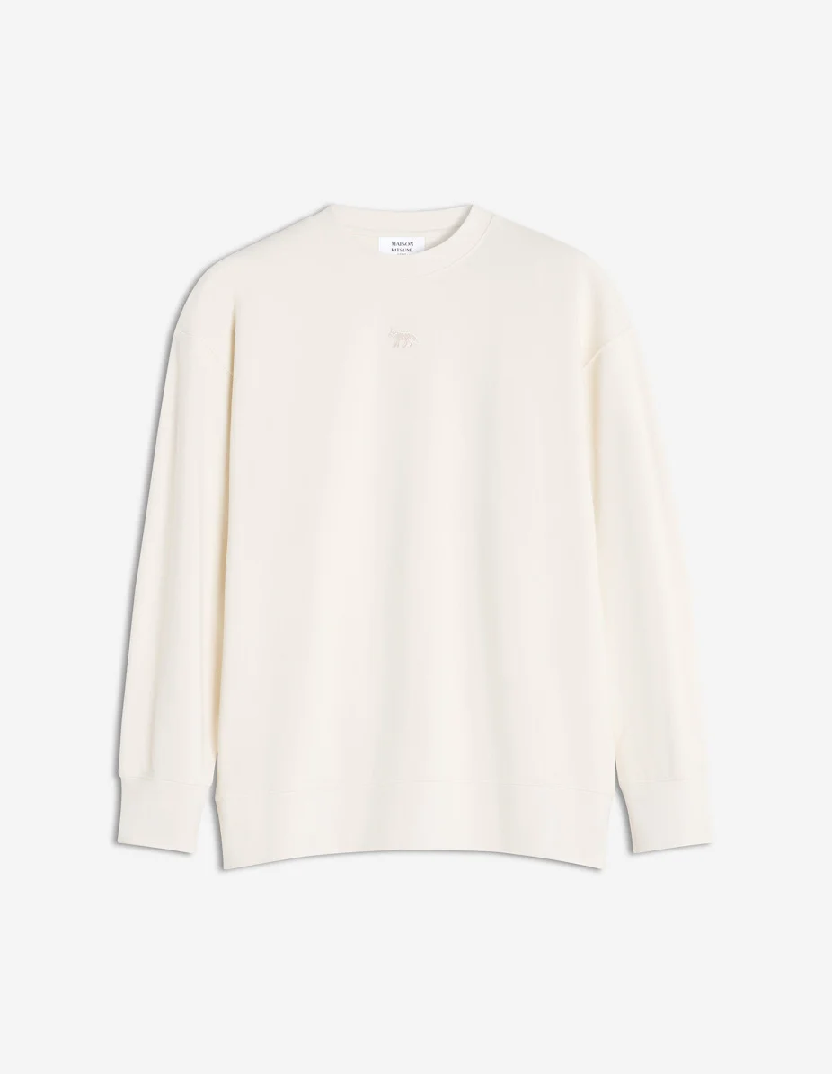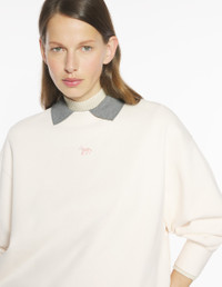 DETAILS Oversize fit fleece sweatshirt with crew neck, Tonal Baby Fox embroidered patch on the chest. - Plain fleece sweatshirt - Organic cotton - Oversize fit - Crew neck - Rib finishing at neckline, cuffs and hem - Tonal Baby Fox embroidered patch on the chest OW00301KM0341-0306 SIZE & CUT Cut: OVERSIZE Sizing: WOMEN The female model is 5.7 and is wearing size S MATERIAL Main Material: 100% COTTON, RIB: 98% COTTON, 2% ELASTANE TRACEABILITY Made in Portugal
