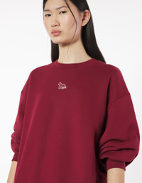 DETAILS Oversize fit fleece sweatshirt with crew neck, Tonal Baby Fox embroidered patch on the chest. - Plain fleece sweatshirt - Organic cotton - Oversize fit - Crew neck - Rib finishing at neckline, cuffs and hem - Tonal Baby Fox embroidered patch on the chest OW00301KM0341-0143 SIZE & CUT Cut: OVERSIZE Sizing: WOMEN The female model is 5.7 and is wearing size S MATERIAL Main Material: 100% COTTON, RIB: 98% COTTON, 2% ELASTANE TRACEABILITY Made in Portugal