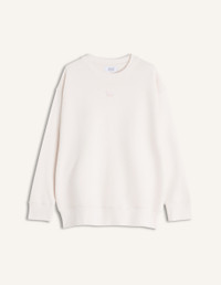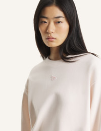 DETAILS Oversize sweatshirt in cotton casual fleece. Baby Fox embroidered patch on the chest. - Sweatshirt in casual cotton fleece (440g) - Oversized fit - Crew neck - Tonal Baby Fox embroidered patch on the chest - Ribbing at the neckline, cuffs, and waist OW00301KM0341-0448 SIZE & CUT Cut: OVERSIZE Sizing: WOMEN The female model is 5.8 tall and wears a size S MATERIAL Main Material: 100% ORGANIC COTTON, RIB: 2% ELASTANE, 98% ORGANIC COTTON TRACEABILITY Made in Portugal