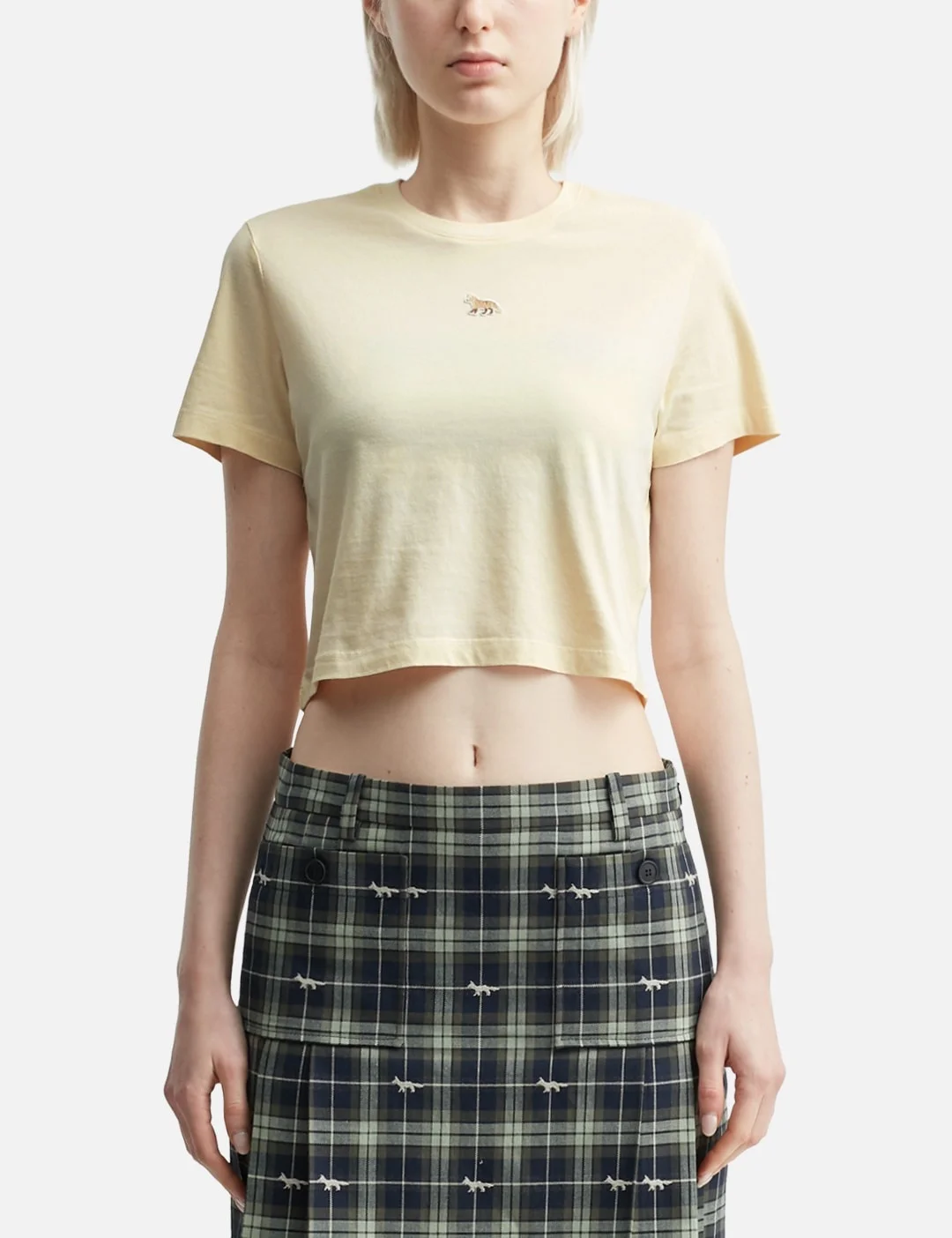 - Maison Kitsune - Baby Fox Patch Baby Tee-shirt - Fitted cut - Cropped length - Ribbed crewneck - Short sleeves - Embroidered tone-on-tone Baby Fox patch on the front - Color: Marble - Material: 100% Cotton - See more T-Shirts and Clothing SIZING - Model wears size S - Model measures: Height 177cm, Chest 31.9’’/81cm, Waist 23.6’’/60cm, Hip 35.8’’/91cm