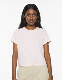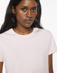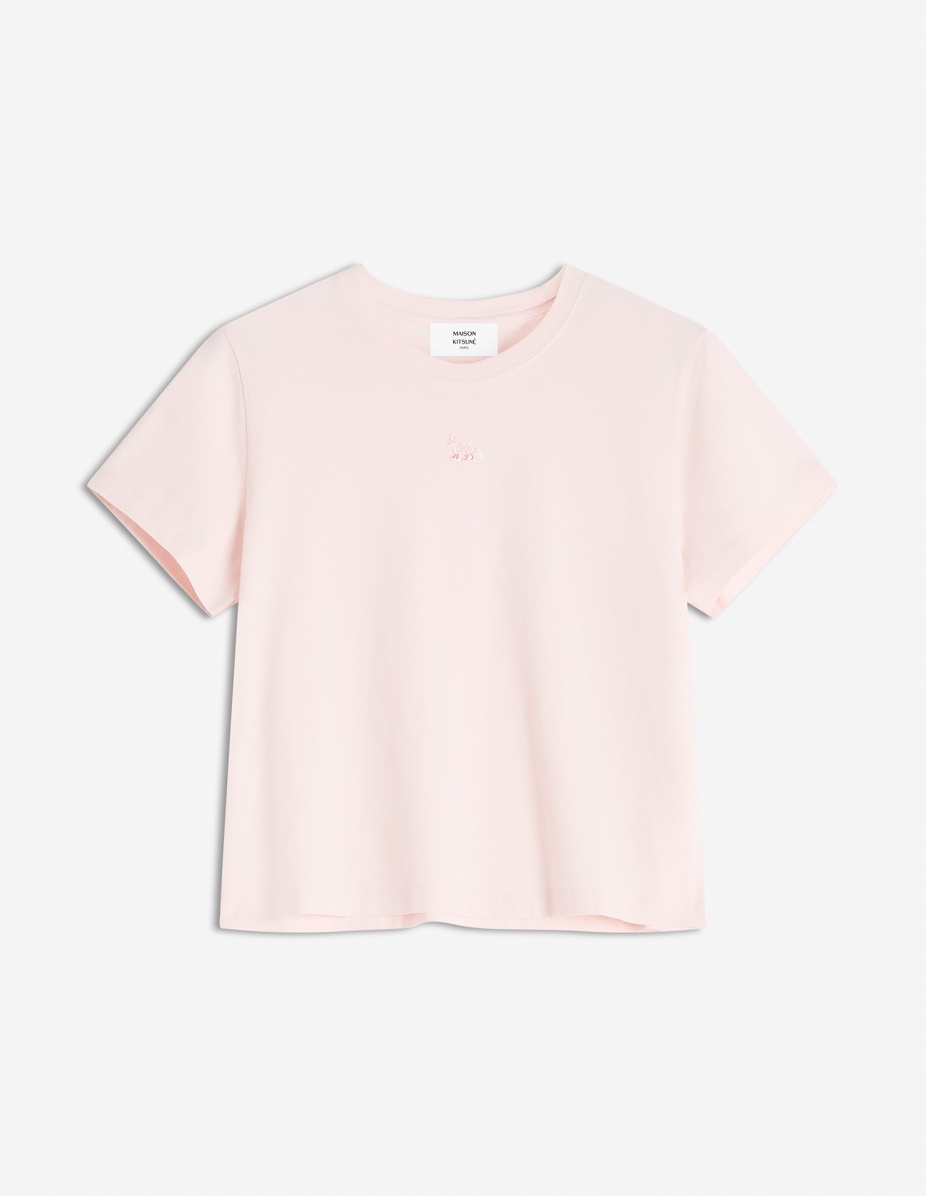DETAILS Fitted cotton tee-shirt. Cropped cut with embroidered Baby Fox patch. - Plain cotton tee-shirt - Fitted cropped cut - Rib-knit trim crewneck - Embroidered tone-on-tone Baby Fox patch on the front - Short sleeves MW00105KJ0008-0140 SIZE & CUT Cut: CROPPED Sizing: WOMEN The female model is 9.1 and is wearing size S MATERIAL 100% COTTON TRACEABILITY Made in Portugal