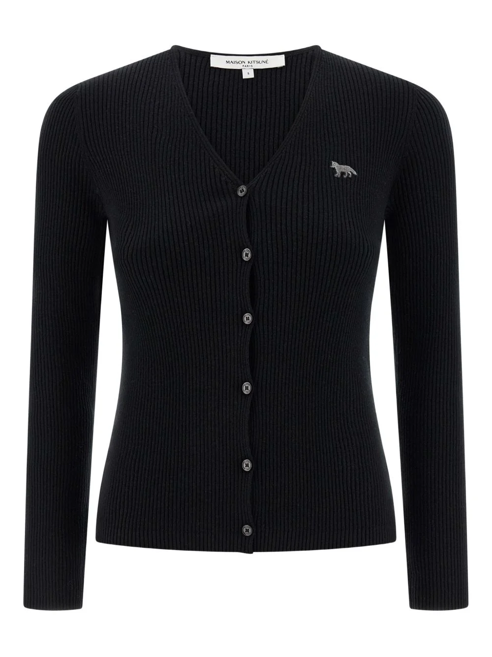 Baby Fox-patch button cardigan Highlights - Black - Ribbed knit - Baby fox patch - V-neck - Front button closure - Long sleeves Imported Composition Wool 55%, Cotton 45%