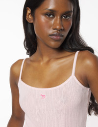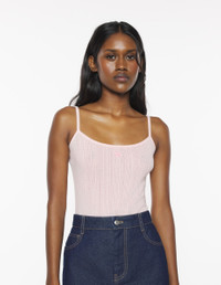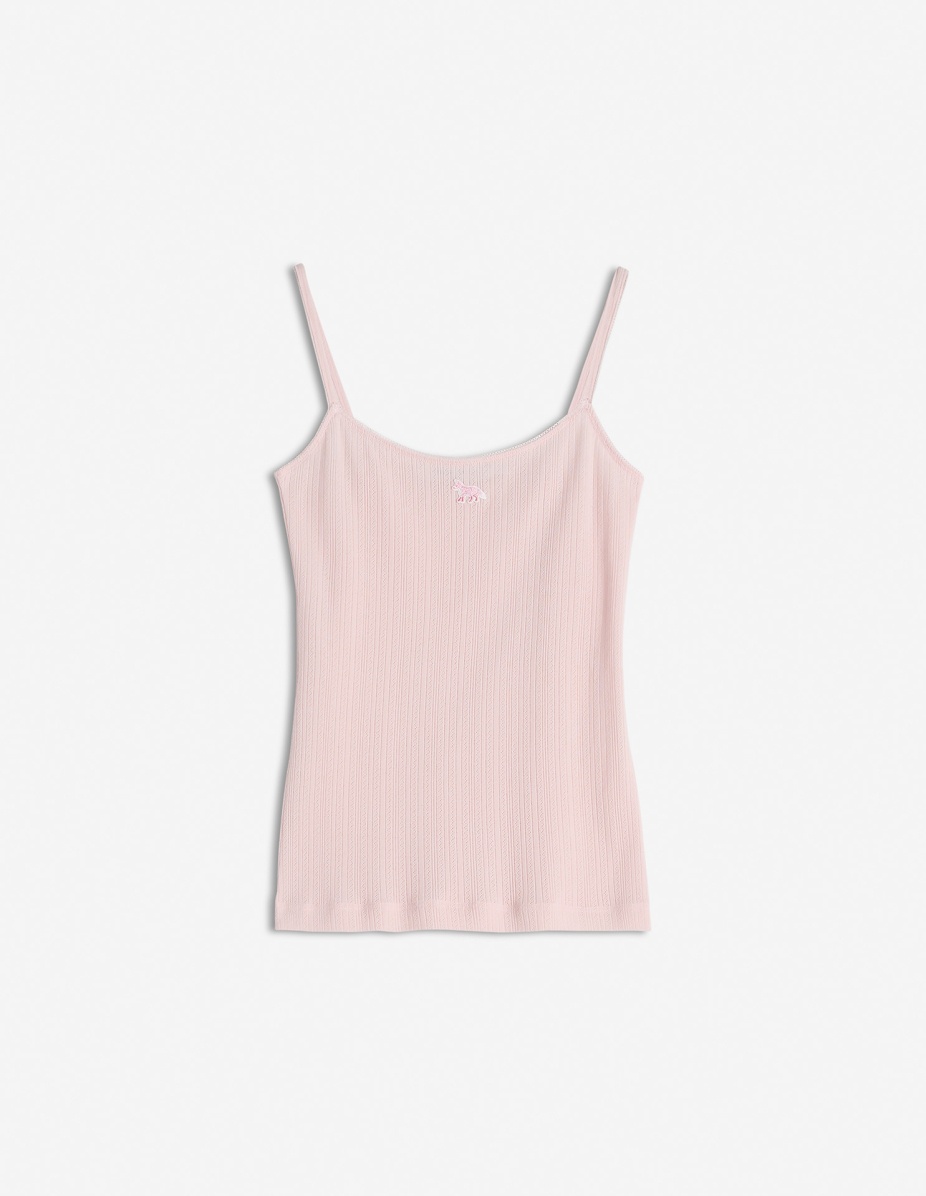 DETAILS Pointelle jersey camisole. Fitted cut with embroidered Baby Fox patch. - Pointelle jersey camisole - Fitted cut - Thin straps - Tone-on-tone Baby Fox patch embroidered at the front - Lace trim OW00608KA0027-0140 SIZE & CUT Cut: FITTED Sizing: WOMEN The female model is 9.1 and is wearing size S MATERIAL 100% COTTON TRACEABILITY Made in Greece