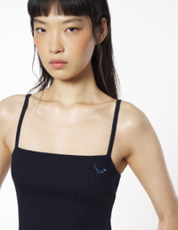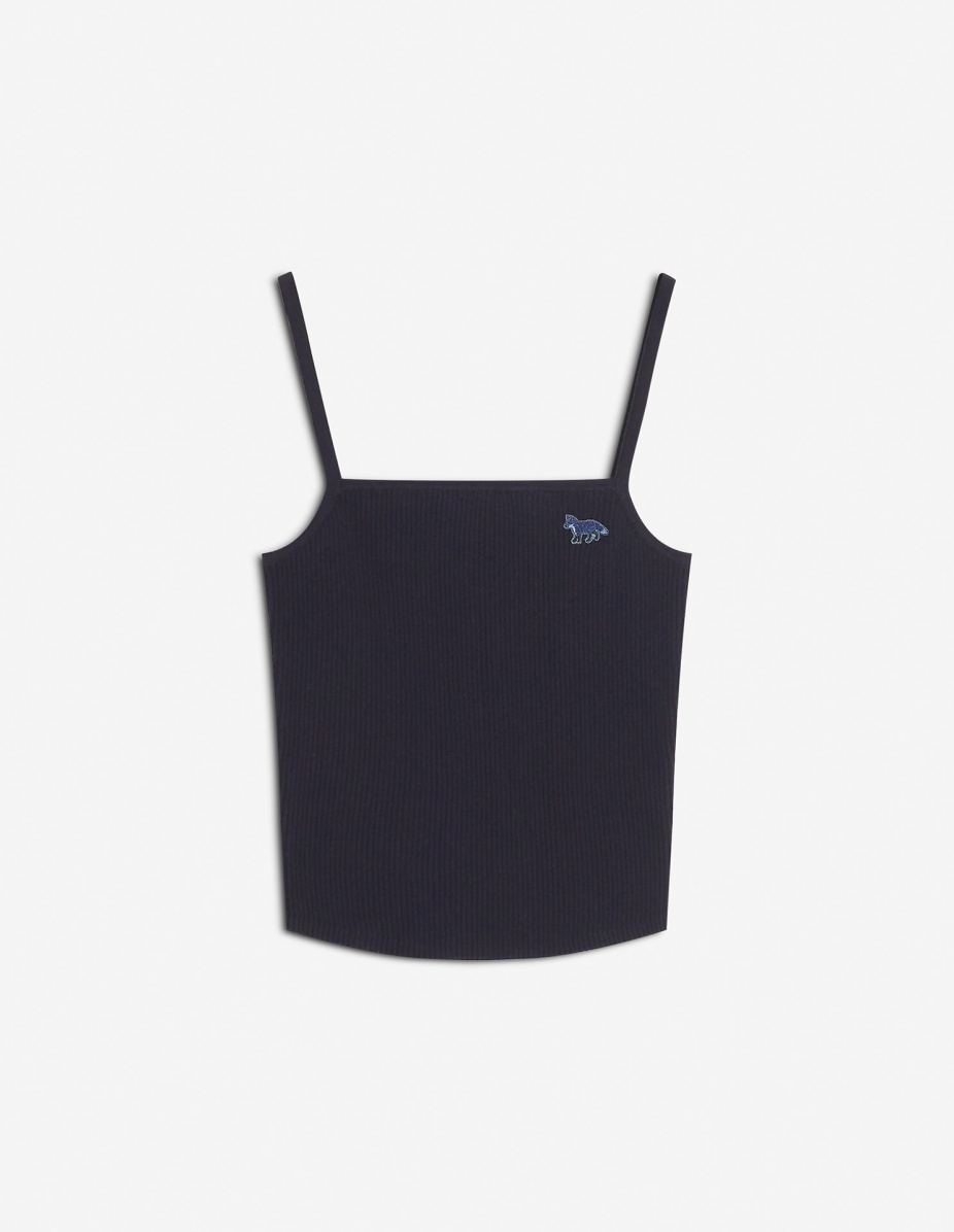 DETAILS Ribbed cotton and wool tank top. Fitted cut with embroidered Baby Fox patch. - Plain ribbed cotton and wool tank top - Fitted cut - Thin straps - Square neckline - Ribbing at the neckline and armholes - Tone-on-tone Baby Fox patch embroidered on the chest OW00601KT1091-P480 SIZE & CUT Cut: FITTED Sizing: WOMEN The female model is 5 and is wearing size S MATERIAL 50% COTTON, 50% WOOL TRACEABILITY Made in China