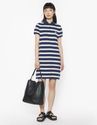 DETAILS Short sleeve polo dress in cotton pique with Multi Stripes motif. Regular cut with embroidered Baby Fox patch. - Polo dress in cotton pique with Multi Stripes motif - Regular cut - Mini length - Polo collar with button placket - Embroidered Baby Fox patch on the chest - Short sleeves - Ribbing at the collar and sleeves OW01619KJ7010-0239 SIZE & CUT Cut: REGULAR Sizing: WOMEN The female model is 5 and is wearing size S MATERIAL 100% COTTON TRACEABILITY Made in Portugal