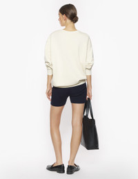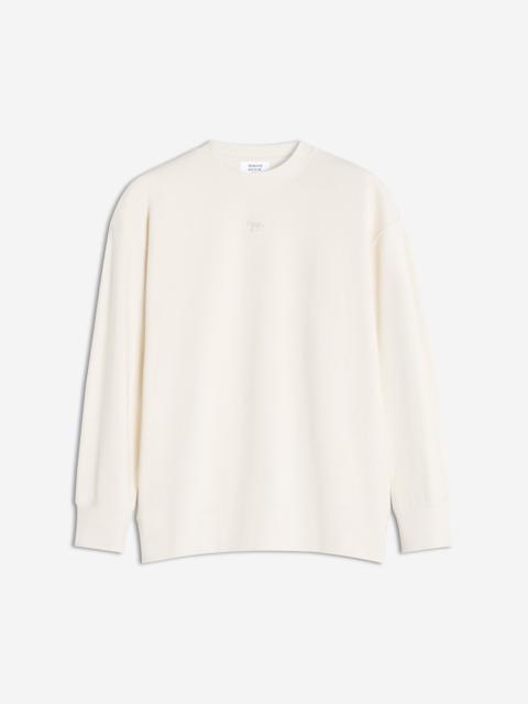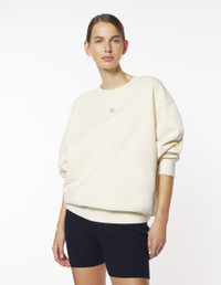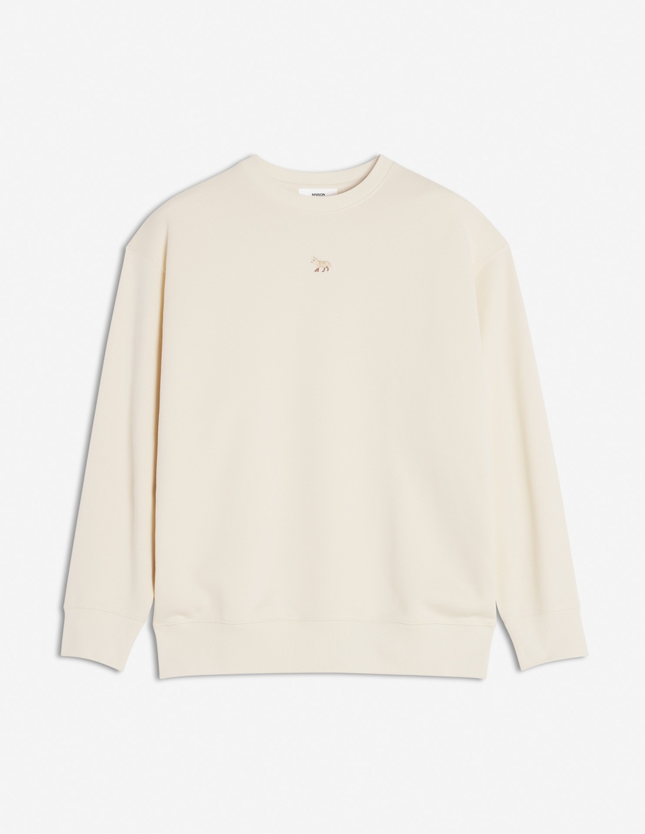 DETAILS Long sleeve fleece sweatshirt. Oversized cut with embroidered Baby Fox patch. - Plain fleece sweatshirt - Oversized cut - Crewneck - Tone-on-tone Baby Fox patch embroidered on the chest - Long sleeves - Ribbing at the collar, cuffs, and waist - Plain back OW00301KM0325-0134 SIZE & CUT Cut: OVERSIZE Sizing: WOMEN The female model is 5.5 and is wearing size S MATERIAL Main Material: 100% COTTON, RIB: 92% COTTON, 8% ELASTANE TRACEABILITY Made in Portugal