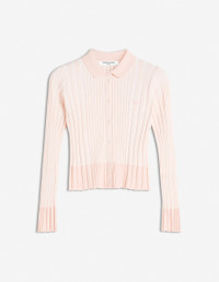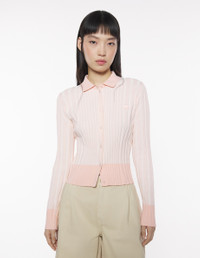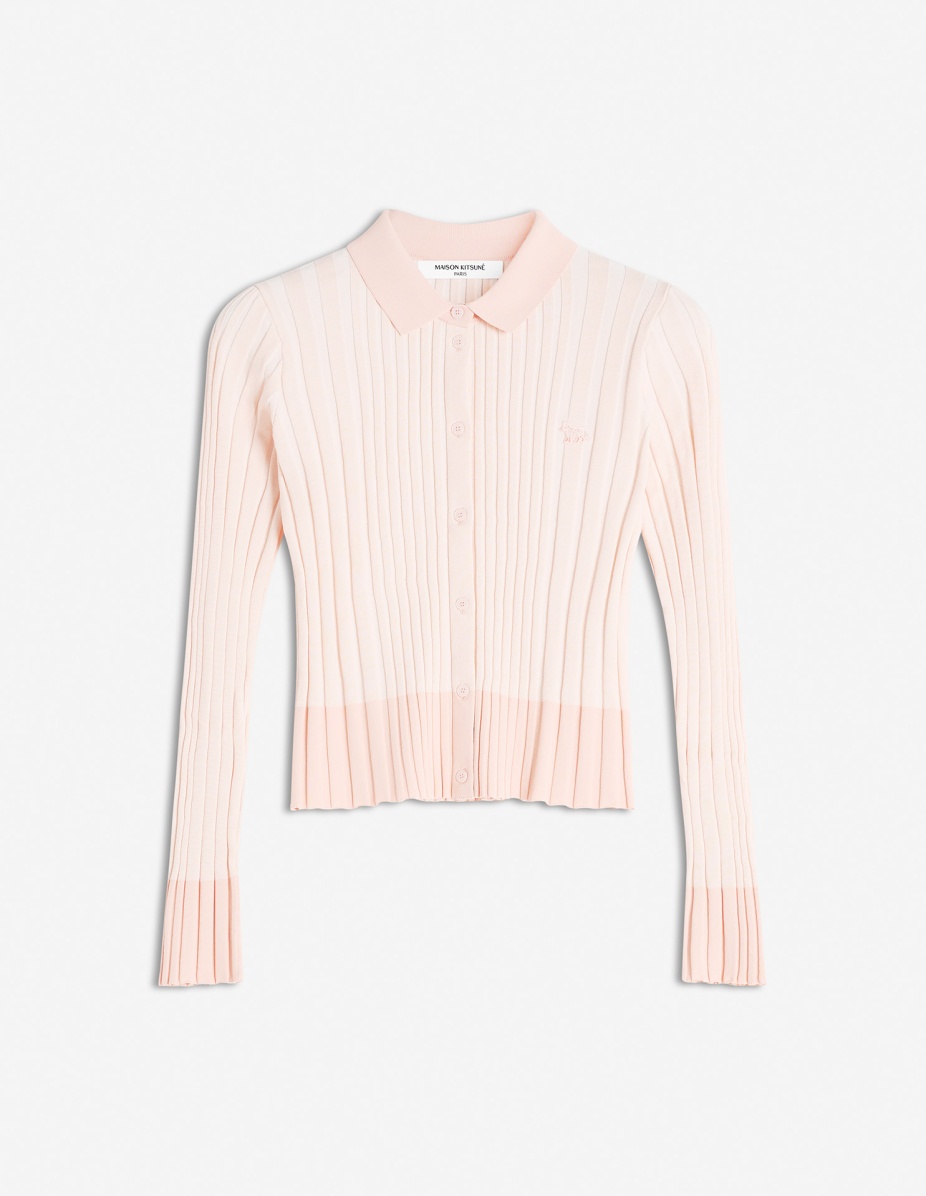 DETAILS Rib-knit cardigan. Cropped, fitted cut with embroidered Baby Fox patch. - Rib-knit cardigan - Cropped, fitted cut - Shirt collar - Tone-on-tone Baby Fox patch embroidered on the chest - Engraved button closure - Long sleeves OW00504KT1121-0088 SIZE & CUT Cut: FITTED Sizing: WOMEN The female model is 5 and is wearing size S MATERIAL 74% COTTON, 4% POLYESTER, 22% VISCOSE TRACEABILITY Made in China