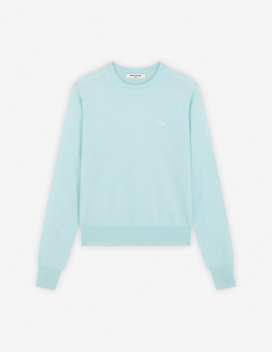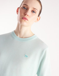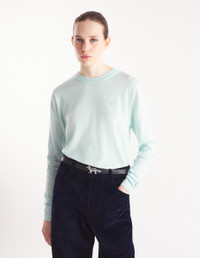DETAILS Long sleeve merino wool jumper. Regular fit with Baby Fox patch embroidered on the chest. - Plain merino wool jumper - Regular fit - Crewneck - Long sleeves - Ribbing at the neckline, cuffs, and waist - Embroidered Baby Fox patch on the chest MW00816KT1036-P305 SIZE & CUT Cut: REGULAR Sizing: WOMEN The female model is 5.8 and is wearing size S MATERIAL 100% MERINO WOOL TRACEABILITY Made in Portugal