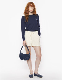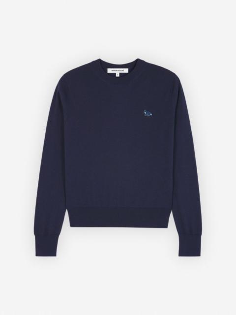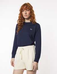 DETAILS Long sleeve fine merino wool jumper. Regular cut with embroidered Baby Fox patch. - Jumper in plain fine merino wool - Regular cut - Crewneck - Tone-on-tone Baby Fox patch embroidered on the chest - Long sleeves - Ribbing at the neckline, cuffs, and waistband MW00816KT1036-P492 SIZE & CUT Cut: REGULAR Sizing: WOMEN The female model is 10 and is wearing size S MATERIAL 100% MERINO WOOL TRACEABILITY Made in Portugal