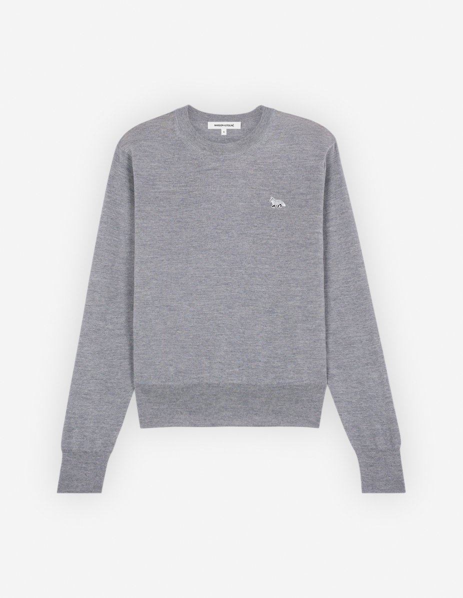 DETAILS Long sleeve fine merino wool jumper. Regular cut with embroidered Baby Fox patch. - Jumper in plain fine merino wool - Regular cut - Crewneck - Tone-on-tone Baby Fox patch embroidered on the chest - Long sleeves - Ribbing at the neckline, cuffs, and waistband MW00816KT1036-H131 SIZE & CUT Cut: REGULAR Sizing: WOMEN The female model is 5.7 and is wearing size S MATERIAL 100% MERINO WOOL TRACEABILITY Made in Portugal