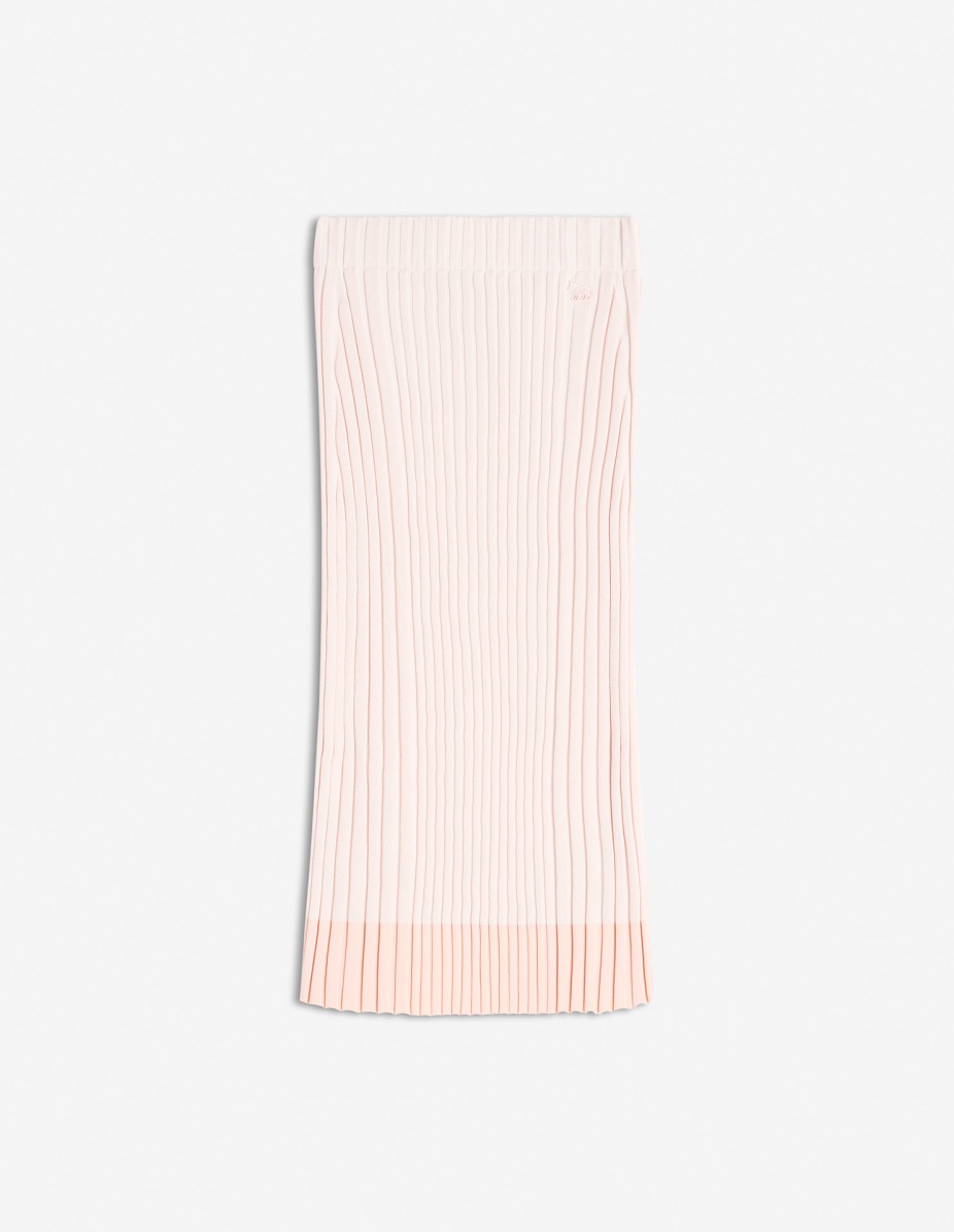 DETAILS Rib-knit midi skirt. Fitted cut with embroidered Baby Fox patch. - Rib-knit midi skirt - Fitted cut - Elasticated waist - Tone-on-tone Baby Fox patch embroidered at the hip OW01520KT1121-0088 SIZE & CUT Cut: MIDI Sizing: WOMEN The female model is 9.1 and is wearing size S MATERIAL 74% COTTON, 4% POLYESTER, 22% VISCOSE TRACEABILITY Made in China