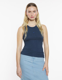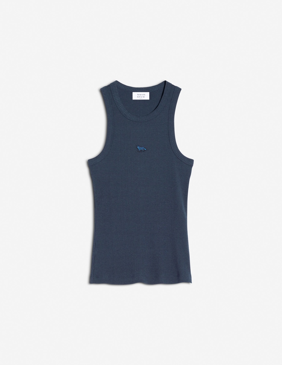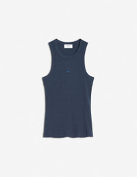 DETAILS Ribbed jersey tank top. Fitted cut with embroidered Baby Fox patch. - Plain ribbed jersey tank top - Fitted cut - American neckline - Ribbing at the neckline and armholes - Tone-on-tone Baby Fox patch embroidered on the front OW00604KJ0134-P476 SIZE & CUT Sizing: WOMEN The female model is 9.1 and is wearing size S MATERIAL 32% COTTON, 4% ELASTANE, 64% LYOCELL TRACEABILITY Made in Portugal