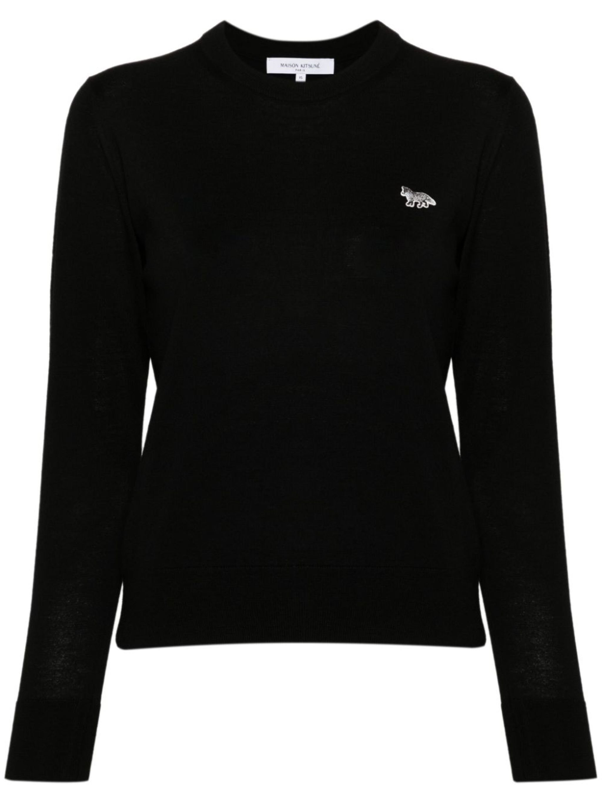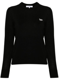 black wool knitted construction fine knit seam detailing crew neck long sleeves ribbed cuffs and hem embroidered Baby Fox patch at the chest straight hem Size & Fit Model Measurements: Height: 1.79 m Bust/Chest: 84.0 cm Hips: 94.0 cm Waist: 64.0 cm Model wears size XS Fabric and Care Designer Style ID: MW00816KT1036 Designer Colour: P199 BLACK Composition: Wool 100% Washing instructions: Hand Wash Made in Portugal