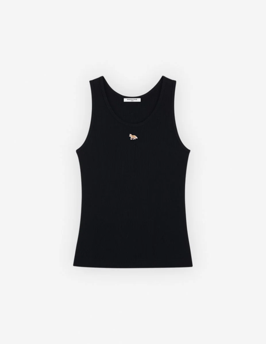 DETAILS Ribbed cotton tank top. Fitted cut with embroidered Baby Fox patch. - Plain ribbed cotton tank top - Fitted cutAmerican neckline - Ribbing at the neckline and armholes - Baby Fox patch embroidered on the front OW00151KJ0125-P199 SIZE & CUT Cut: FITTED Sizing: WOMEN MATERIAL 100% COTTON TRACEABILITY Made in Portugal