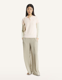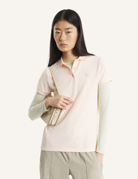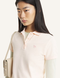DETAILS Short sleeve polo in soft cotton pique. Regular fit with Baby Fox embroidered patch on the chest. - Polo in soft cotton pique - Regular fit - Polo collar - Button placket with Maison Kitsune engraved buttons - Tonal Baby Fox embroidered patch on the chest - Ribbing at collar and armholes MW00202KP0001-0448 SIZE & CUT Cut: REGULAR Sizing: WOMEN The female model is 5.8 tall and wears a size S MATERIAL 100% ORGANIC COTTON TRACEABILITY Made in Portugal