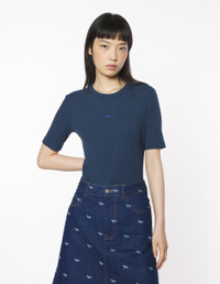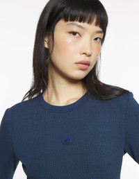 DETAILS Short sleeve ribbed cotton tee-shirt. Fitted cut with embroidered Baby Fox patch. - Plain ribbed cotton tee-shirt - Fitted cut - Rib-knit trim crewneck - Tone-on-tone Baby Fox patch embroidered on the front - Short sleeves OW00124KJ0134-P476 SIZE & CUT Cut: FITTED Sizing: WOMEN The female model is 5 and is wearing size S MATERIAL 32% COTTON, 4% ELASTANE, 64% LYOCELL TRACEABILITY Made in Portugal