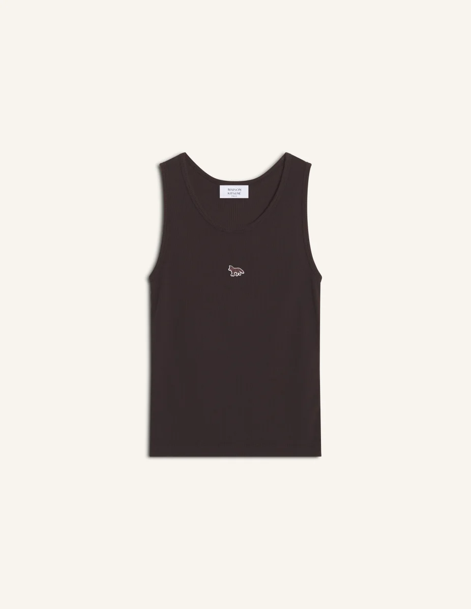 DETAILS Tank top in classic rib. Fitted cut with Baby Fox embroidered patch on the chest. - Ribbed cotton tank top - Fitted cut - Round neck with ribbing at the neckline and armholes - Tonal Baby Fox embroidered patch on the chest MW00121KA0033-0423 SIZE & CUT Cut: FITTED Sizing: WOMEN The female model is 5.7 tall and wears a size S MATERIAL 100% ORGANIC COTTON TRACEABILITY Made in Portugal
