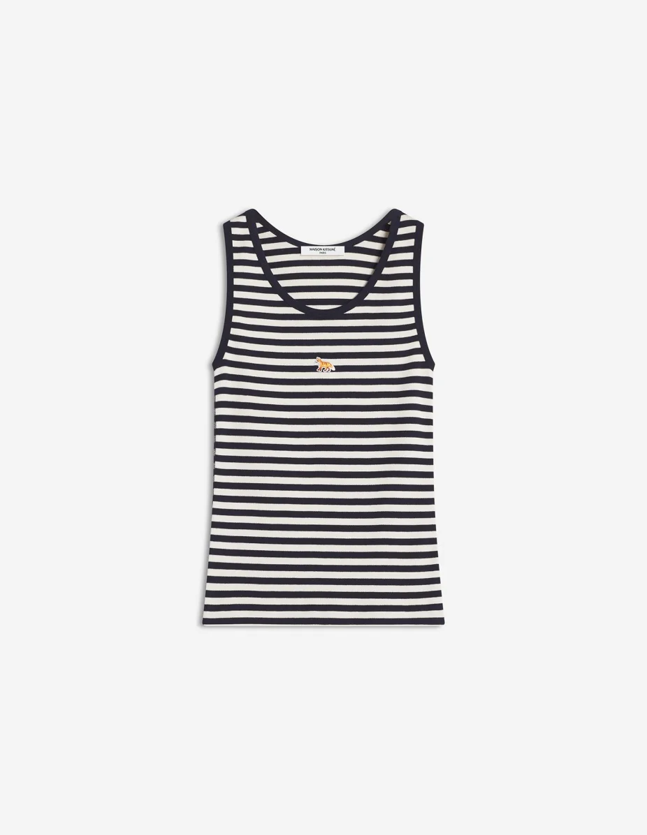 DETAILS Striped ribbed cotton tank top. Fitted fit with embroidered Baby Fox patch. - Striped ribbed cotton tank top - Fitted fit - Scoop neckline - Baby Fox embroidered patch at chest PW00619KJ7033-0392 SIZE & CUT Cut: FITTED Sizing: WOMEN The female model is 5.7 and is wearing size S MATERIAL 100% COTTON TRACEABILITY Made in Portugal