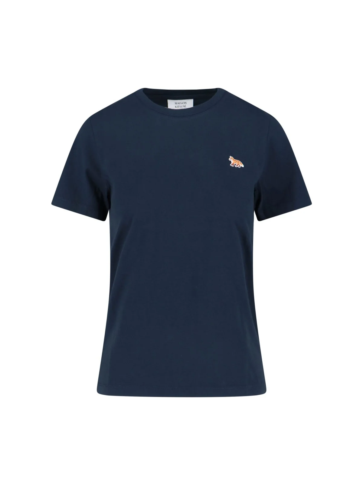 MAISON KITSUNE 'BABY FOX' NAVY BLUE COTTON T-SHIRT WITH CREW NECK, SHORT SLEEVES, CONTRAST 'BABY FOX' LOGO EMBROIDERY AT THE FRONT, RIBBED TRIMS, STRAIGHT HEM. PRODUCT INFO PRODUCT CODE PW00115KJ70260413 COMPOSITION: 100% COTTON SIZE AND FIT: REGULAR FIT MADE IN: PORTUGAL