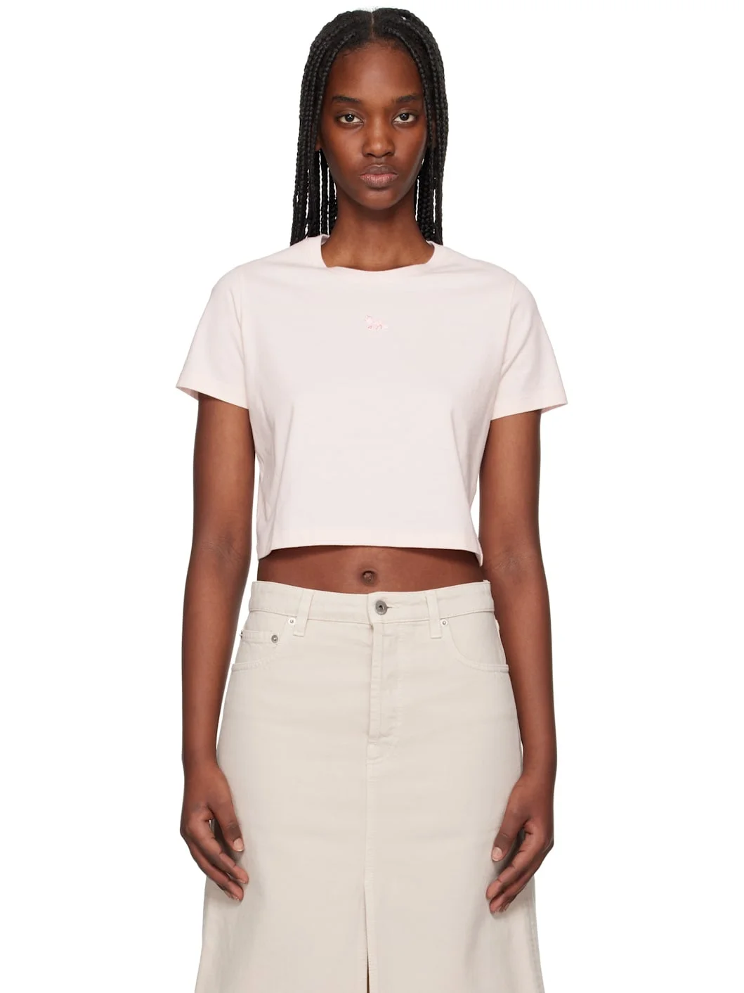 Cotton jersey T-shirt. · Rib-knit crewneck · Embroidered logo graphic patch at chest · Cropped hem Supplier color: Rosewater 100% cotton. Made in Portugal 251389F110021