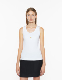 DETAILS Ribbed cotton tank top. Fitted fit with Baby Fox embroidered patch. - Stretch ribbed cotton tank top - Organic cotton - Fitted fit - Scoop neckline - Baby Fox embroidered Patch at the chest PW00623KA0033-P100 SIZE & CUT Cut: FITTED Sizing: WOMEN The female model is 5.7 and is wearing size S MATERIAL 100% COTTON TRACEABILITY Made in Portugal