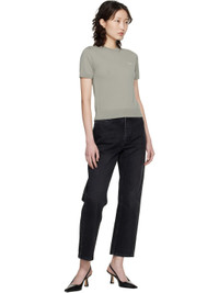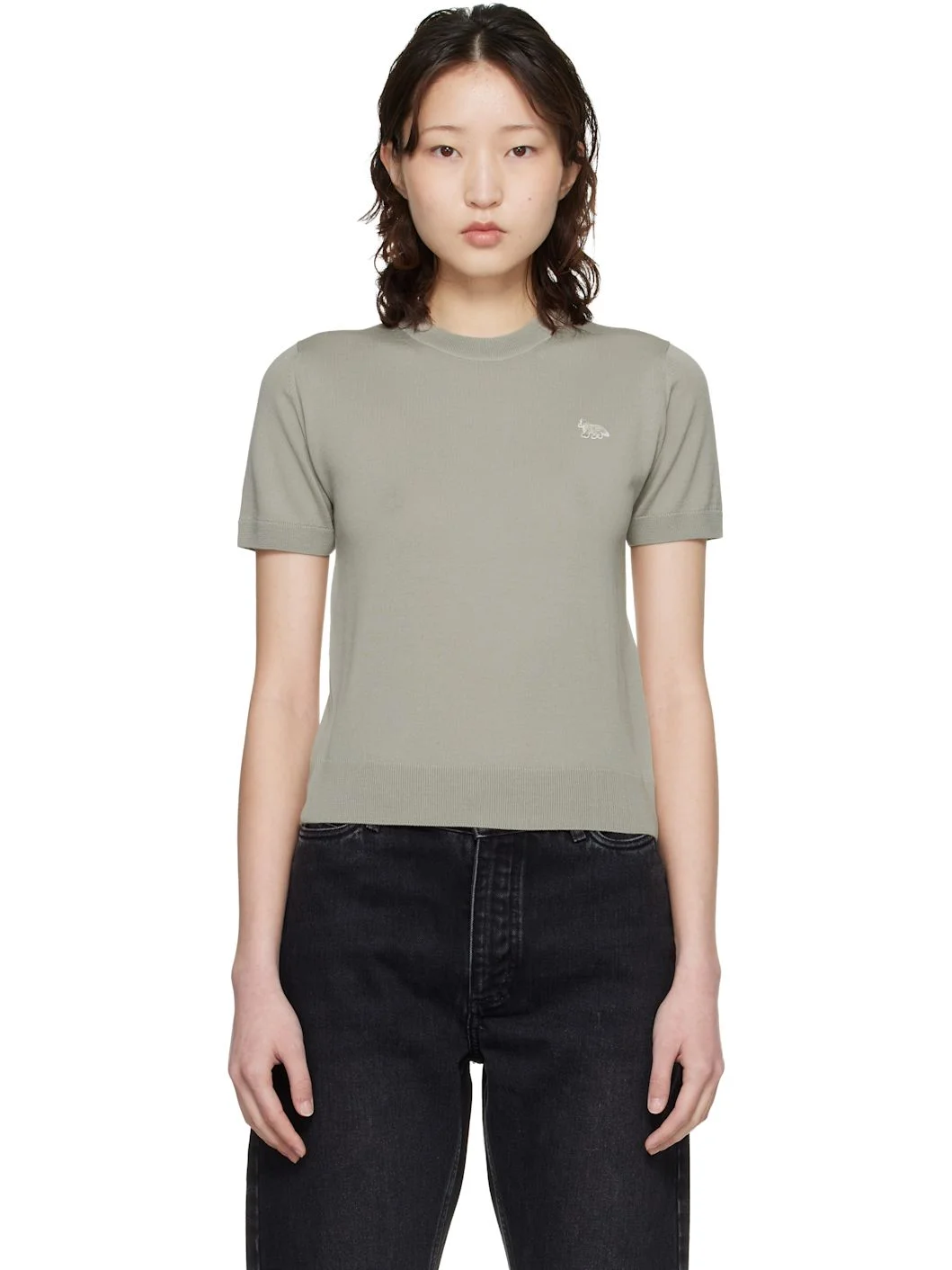 Knit merino wool sweater. · Rib-knit crewneck, hem, and cuffs · Embroidered logo patch at chest Supplier color: Tea leaf 100% wool. Made in Portugal 261389F096004
