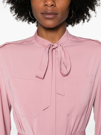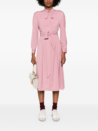 belted midi shirt dress Highlights - Pink/red - Pussy-bow collar - Long sleeves - Buttoned cuffs - Two chest patch pockets - Belt loops - Detachable belt - Belted waist - Two side inset pockets - Straight hem - Concealed front button fastening Imported Composition Polyester 100% SIZE & FIT Model measurements Height 5 ft 11 in(1.8 m) Bust/Chest 32.67 in(83 cm) Hips 35.82 in(91 cm) Waist 25.98 in(66 cm) FittingInformation Designed to be unstructured, offering a loose fit throughout The adjustable tie waist gives a more adaptable and personalised fit Made from a midweight non-stretch fabric This piece fits true to size – take your usual size