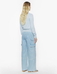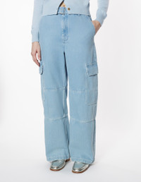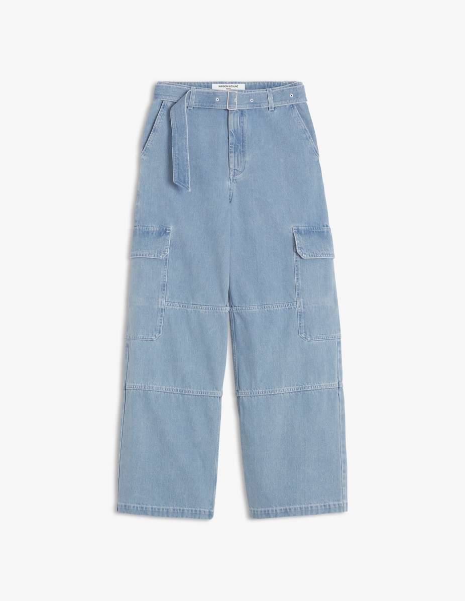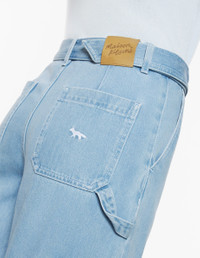 DETAILS Denim workwear pants. Relaxed cut with embroidered Profile Fox and Maison Kitsune embossed jacron at the back. - Denim workwear pants - Relaxed cut - Waistband with belt loops - Removable belt with workwear buckle and metal eyelets - Engraved metal button closure with hidden zipper - Two side slash pockets - Two side patch pockets with flaps - Decorative side tab - Maison Kitsune embossed jacron at the back - Two patch back pockets - Profile Fox embroidered on the back pocket OW01126WD4010-P404 SIZE & CUT Cut: RELAXED Sizing: WOMEN The female model is 9.1 and is wearing size S MATERIAL Main Material: 100% COTTON, Pocket lining: 35% COTTON, 65% POLYESTER TRACEABILITY Made in Italy