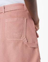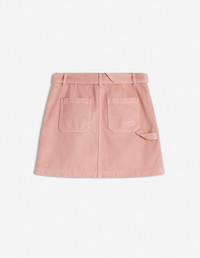DETAILS Cargo miniskirt in overdyed denim. Mini length with Maison Kitsune Handwriting signature embroidered. - Belted mini cargo skirt in overdyed denim - Mini length - Waistband with belt loops - Removable belt with metal buckle - Button closure with hidden zipper - Two side patch pockets with snap flaps - Two back patch pockets - Tone-on-tone Maison Kitsune Handwriting signature embroidered on the back pocket OW01509WD4012-0088 SIZE & CUT Cut: MINI Sizing: WOMEN The female model is 9.1 and is wearing size S MATERIAL 100% COTTON TRACEABILITY Made in Tunisia