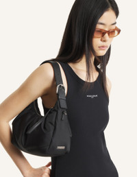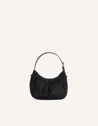 DETAILS Bloom bag in compact nylon. Maison Kitsune Paris engraved metal rivet on the side. - Bloom bag in compact nylon with delicate pleats - Hand, shoulder, and crossbody wear - Adjustable leather handle with belt buckle - Adjustable and removable strap - Maison Kitsune Paris engraved metal rivet on the side - One main compartment - Zip closure with Profile Fox engraved zip puller - Inside flat pocket - Nylon lining - Dimensions: 22 x 20 x 12 cm QU05201WB0049-P199 SIZE & CUT Sizing: UNISEX MATERIAL Main Material: 100% POLYAMIDE TRACEABILITY Made in China