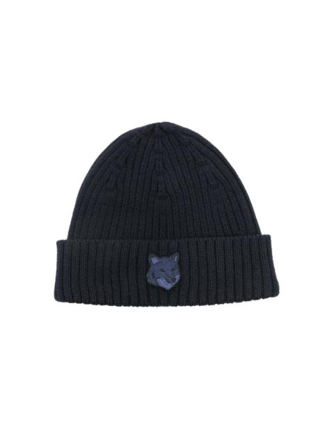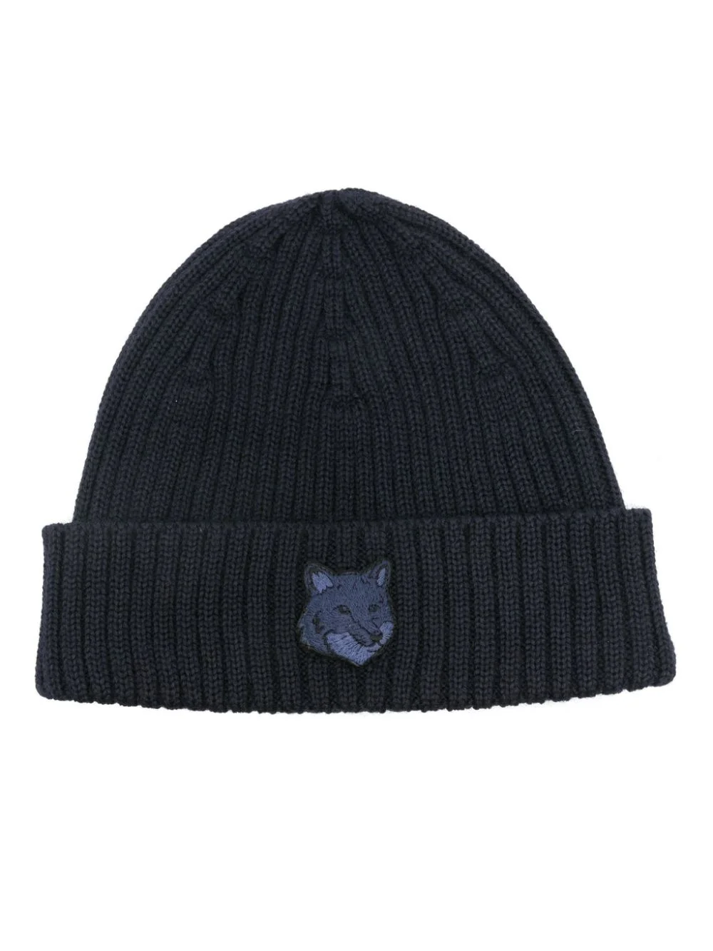 Bold Fox Head ribbed beanie Highlights - Navy blue - Wool - Ribbed knit - Bold fox head embroidery patch to the front - Turn-up brim - Pull-on style Imported Composition Wool 100% Washing instructions Hand Wash