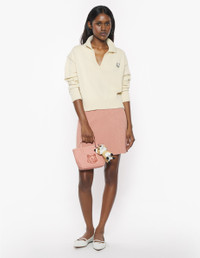 DETAILS Long sleeve cotton polo shirt. Comfort cut with embroidered Bold Fox Head patch. - Plain cotton polo shirt - Comfort cut - Polo collar - Tone-on-tone Bold Fox Head patch embroidered on the chest - Long sleeves - Ribbing at the collar, cuffs, and waist OW00202KT1099-0145 SIZE & CUT Cut: COMFORT Sizing: WOMEN The female model is 9.1 and is wearing size S MATERIAL 70% COTTON, 30% POLYAMIDE TRACEABILITY Made in China