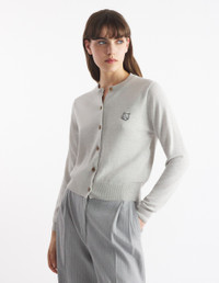 DETAILS Merino wool cardigan. Regular cut with Bold Fox Head patch embroidered at the chest. - Merino wool cardigan - Regular cut - Crewneck - Button closure - Long sleeves - Ribbing at the neckline, waist, and cuffs - Embroidered Bold Fox Head patch at the chest - Plain back MW00508KT1036-H120 SIZE & CUT Cut: REGULAR Sizing: WOMEN The female model is 5.8 and is wearing size S MATERIAL 100% MERINO WOOL TRACEABILITY Made in Portugal