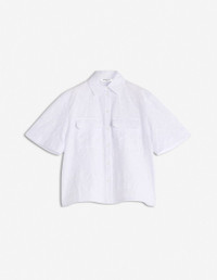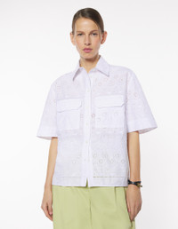 DETAILS Short sleeve shirt with English embroidery. Boxy cut with elaborate details. - Cotton shirt with English embroidery - Boxy cut - Shirt collar - Engraved button closure at the front - Short sleeves with cuffs - English embroidery with Profile Fox and Daisy details - Two chest patch pockets with flaps OW00437WF4038-P100 SIZE & CUT Cut: BOXY Sizing: WOMEN The female model is 5.5 and is wearing size S MATERIAL 54% COTTON, 46% POLYESTER TRACEABILITY Made in Bulgaria