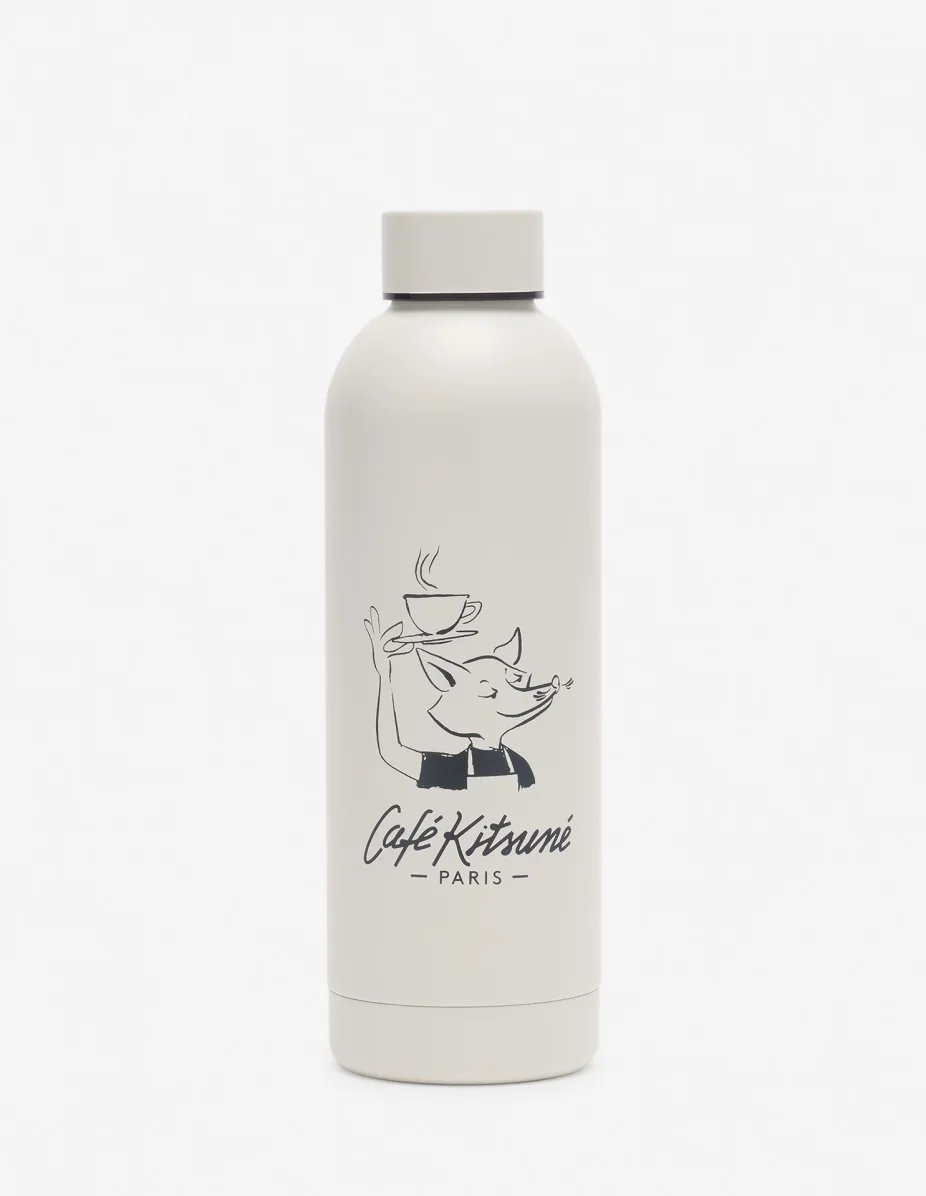 DETAILS Cafe Kitsune collection stainless steel insulated bottle with Barista Fox print. -Stainless steel insulated bottle - Hermetic cap - Contrasted Barista Fox print on the front - Capacity: 500 mL - Cafe Kitsune collection CKNU08102O0014-P709 SIZE & CUT Sizing: UNISEX MATERIAL Body: 100% STEEL, Lid: 15% POLYPROPYLENE, 5% SILICON, 80% STEEL TRACEABILITY Made in China