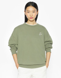 DETAILS Soft fleece sweatshirt with long sleeves. Relaxed fit with embroidered Cafe Kitsune Handwriting signature on the chest. - Soft plain fleece sweatshirt - Relaxed fit - Crew neck - Rib finishing at the neckline, cuffs and hem - Cafe Kitsune Handwriting signature embroidered on the chest PU00301KM0330-0079 SIZE & CUT Cut: RELAX Sizing: UNISEX The male model is 6.1 and is wearing size M MATERIAL 100% COTTON TRACEABILITY Made in Portugal