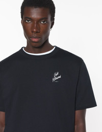DETAILS Short-sleeved T-shirt in cotton jersey. Relaxed fit with embroidered Cafe Kitsune Handwriting signature. - Soft cotton jersey T-shirt - Relaxed fit - Short sleeves - Crew neck with rib finishing - Cafe Kitsune Handwriting signature embroidered on the chest PU00105KJ7014-P199 SIZE & CUT Cut: RELAX Sizing: UNISEX The male model is 6.1 and is wearing size M MATERIAL 100% COTTON TRACEABILITY Made in Portugal
