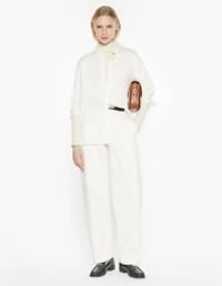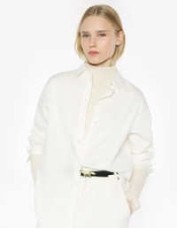 DETAILS Casual cotton-silk blend shirt with tonal soft textured stripes. Casual fit and gold Profile Fox button. - Casual shirt in a cotton-silk blend with tonal soft textured stripes - Casual fit - Long sleeves finished with a straight buttoned cuff - Classic collar - Gold Profile fox button at the collar - Engraved button closure PW00401WC5059-0305 SIZE & CUT Cut: REGULAR Sizing: WOMEN The female model is 5.7 and is wearing size 36 MATERIAL 90% COTTON, 10% SILK TRACEABILITY Made in Portugal