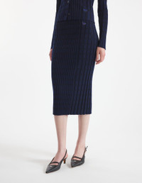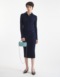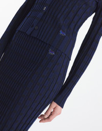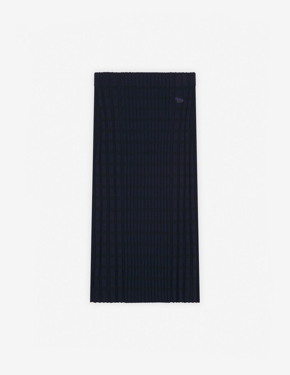 DETAILS Checked rib-knit midi skirt with Baby Fox patch embroidered on the hip. - Checked rib-knit midi skirt - Below-knee length - Elasticated waist - Tonal embroidered Baby Fox patch at the hip NW01516KF0003-B414 SIZE & CUT Cut: MIDI Sizing: WOMEN The female model is 5.7 and is wearing size S MATERIAL 7% ELASTANE, 32% RAYON, 61% WOOL TRACEABILITY Made in China