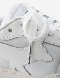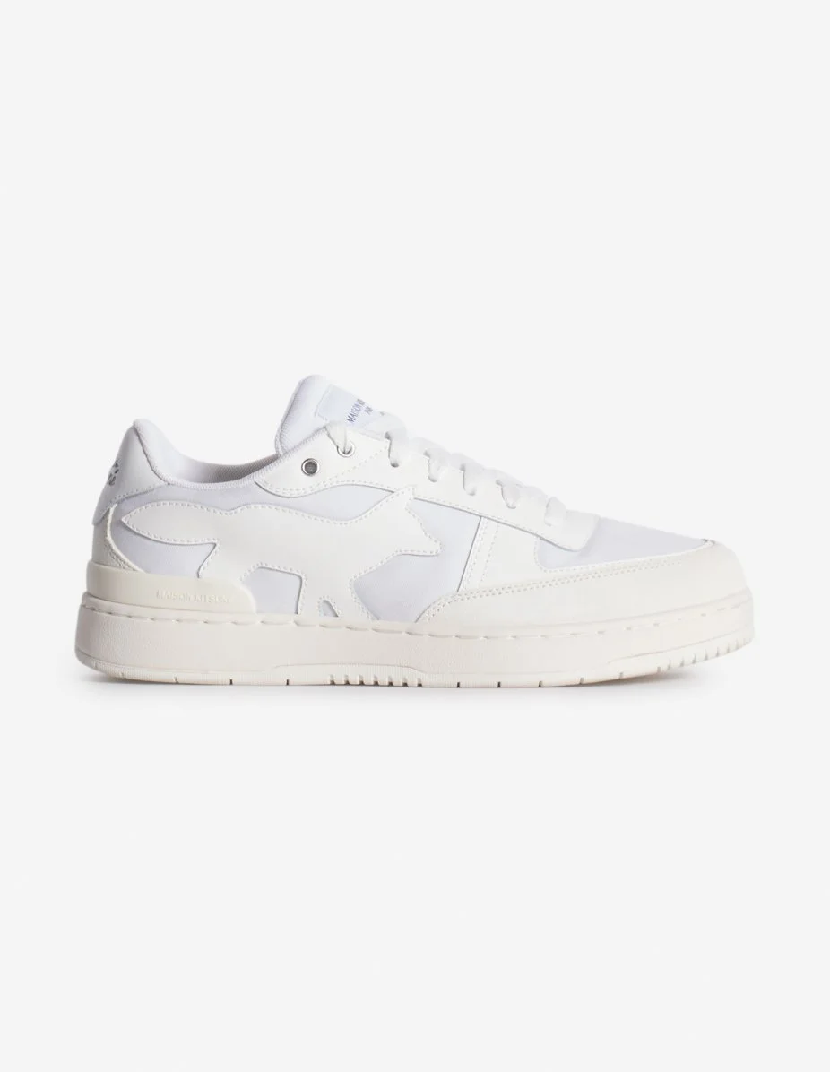 DETAILS Chiru trainers in leather. Sporty model with emblematic Maison Kitsune signatures. - Chiru leather trainers - Smooth leather and canvas - Round toe - Lace-up closure - Lace finishes with Maison Kitsune Handwriting signature print - Maison Kitsune logo woven label on the tongue - Topstitched leather Profile Fox on the sides - Maison Kitsune logo in relief on the side - Maison Kitsune Handwriting signature patch embossed at the back - Rubber outsole - Technical fabric lining and insole MW04804WQ1101-P100 SIZE & CUT Sizing: WOMEN MATERIAL Upper: 42% BOVINE LEATHER, 44% COTTON, 14% POLYESTER, Lining: 100% POLYESTER, Outsole: 100% RUBBER TRACEABILITY Made in China